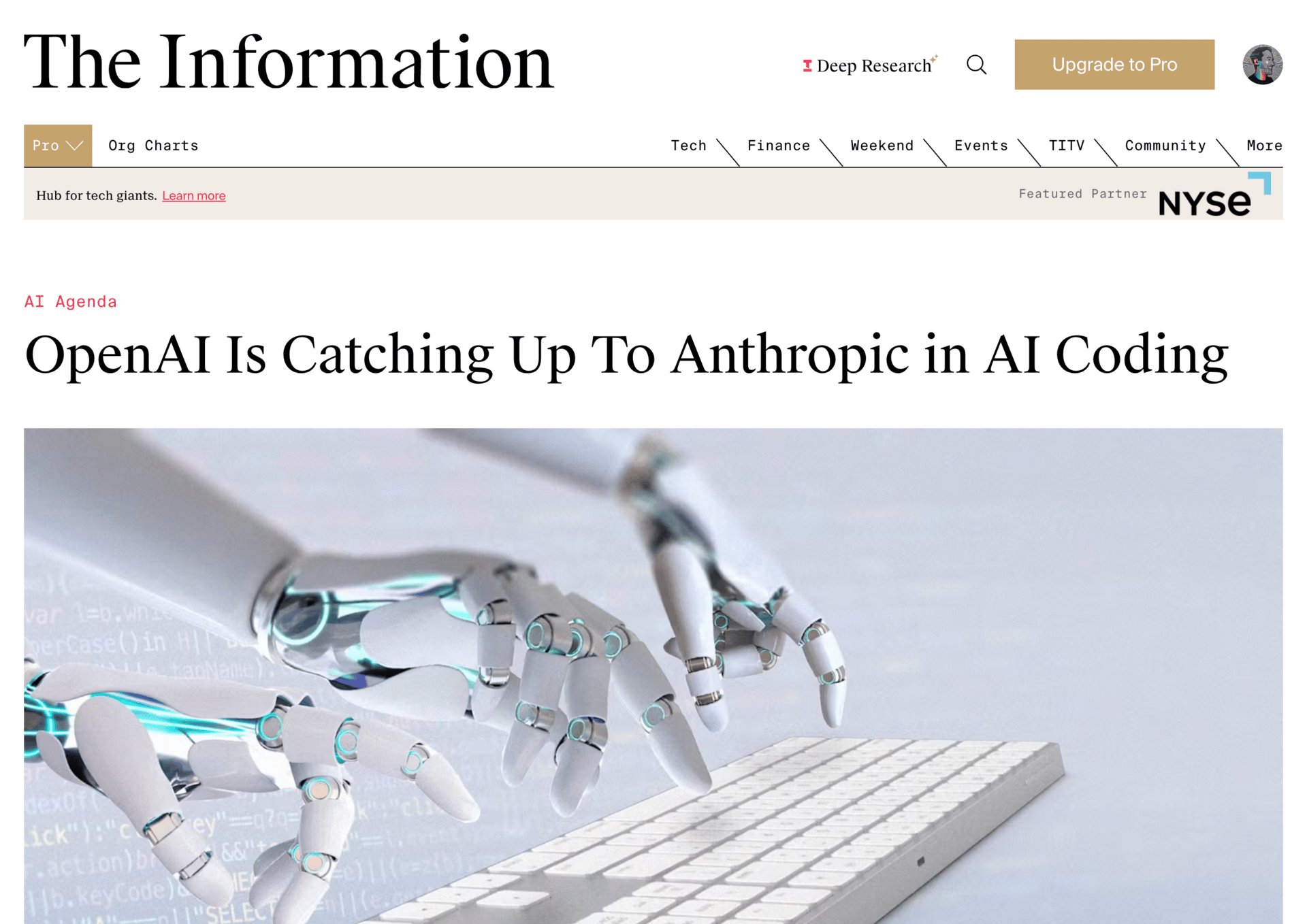 Then OpenAI released ChatGPT-5 and with it GPT-5 Codex and well, they’re definitely in the conversation now, and starting to dominate it from what I can see. But it looks like it’s not just me noticing it because when I was drinking my coffee this morning, reading The Information, I saw this headline ⬇️